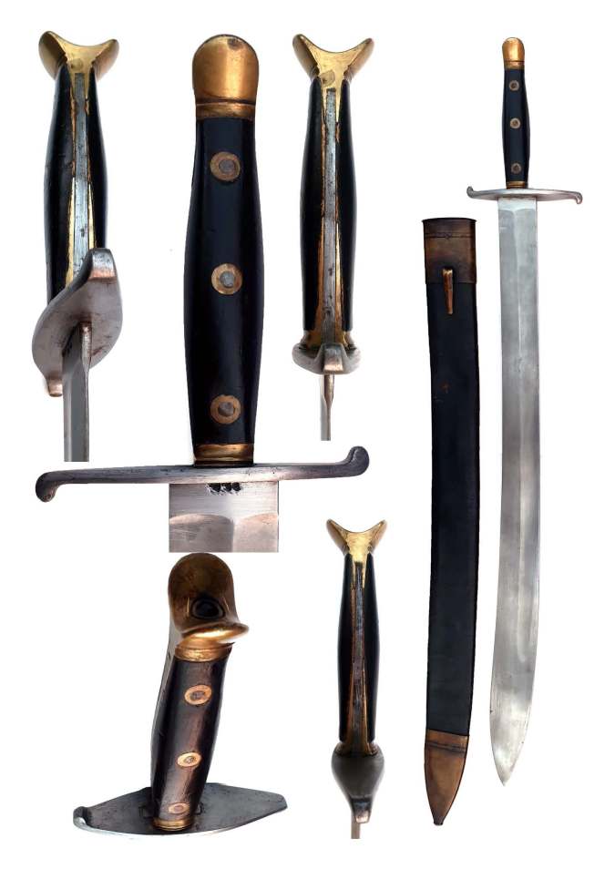 Swedish Marine/National Guard Cutlass Model M1810 and used in the Gotlands by Swedish Naval Forces against Russian forces in 1810 during the Napoleonic Wars. The model 1810 short sword (edge on inside of blade) was used on land on the island of Gotland but allegedly handed over by the Army Fleet.
