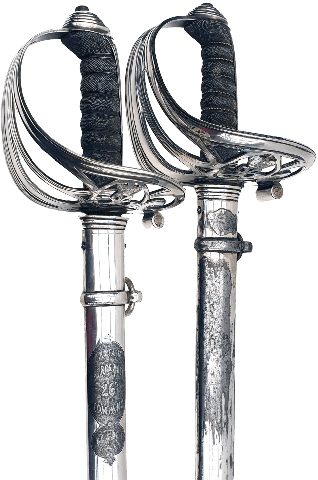 Ref010-Pair of Named Swords, UK-Rifle-c1827-26th Company Cheadle Volunteers-Officer-G Peel & UK-Rifle-c1827-26th Company Cheadle Volunteers-Officer-G Peel-Levy.